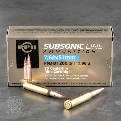 200rds – 7.62x51mm Prvi Partizan Subsonic 200gr. FMJBT Ammo Details