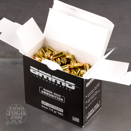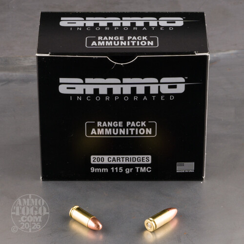 200rds – 9mm Ammo Inc. 115gr. TMJ Ammo