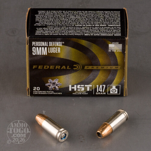 200rds - 9mm Federal Personal Defense 147gr. HST JHP Ammo Details
