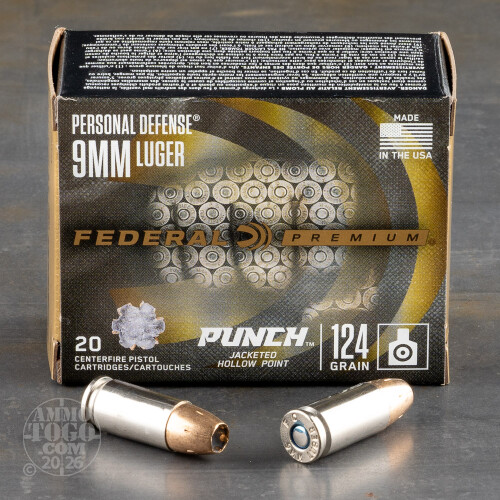 200rds – 9mm Federal Punch 124gr. JHP Ammo Details