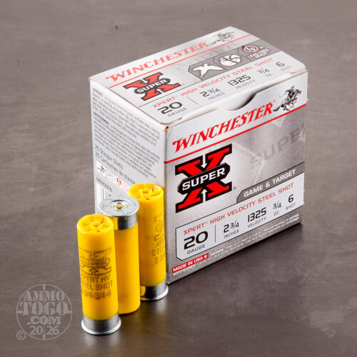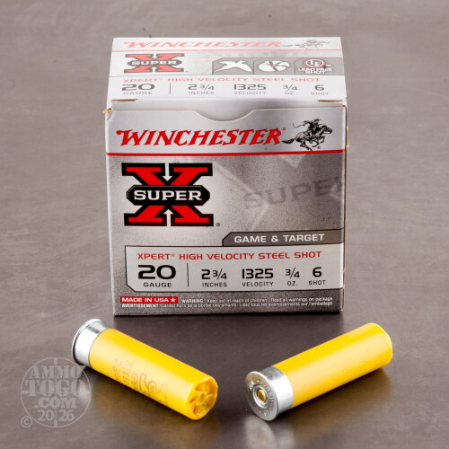 100rds – 20 Gauge Winchester Super X Xpert 2-3/4" 3/4oz. #6 Steel Shot Ammo Details