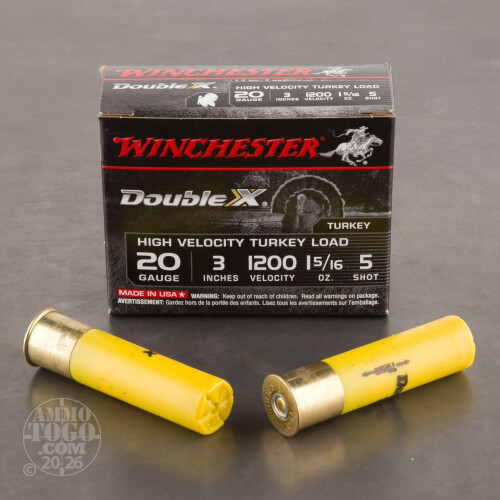 This is 20 Gauge Winchester Supreme High Velocity 3" 1 5/16oz. #5 Turkey Load Ammo. Supreme High Velocity Turkey Loads are packed with all the hard-hitting, bird-bagging ingredients you need to satisfy your taste for smoked turkey. Muzzle velocity of 1200fps. This ammo comes packed in 10rd. boxes.