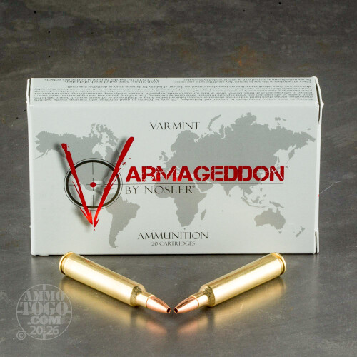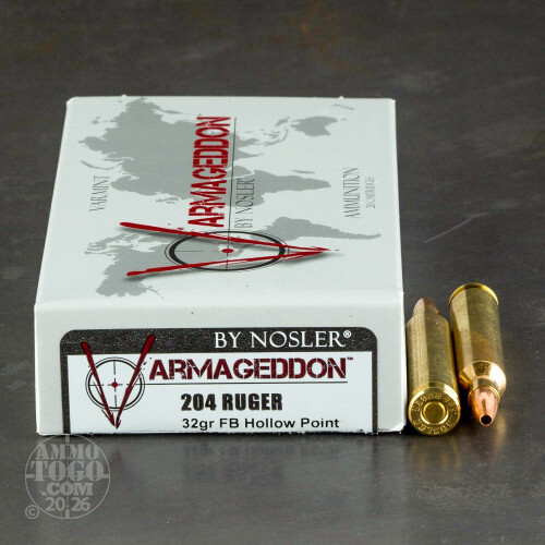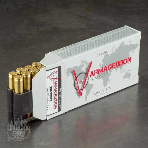 20rds - 204 Ruger Nosler Varmageddon 32gr. Flat Base Hollow Point Ammo