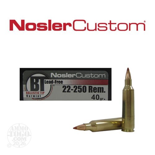 20rds - 22-250 Nosler Trophy Grade Varmint 40gr. Ballistic Tip Lead Free Ammo Details