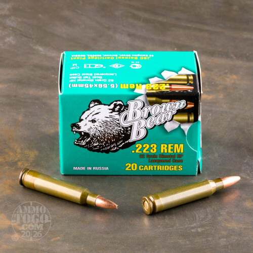 20rds - 223 Rem Brown Bear 62gr. HP Ammo Details