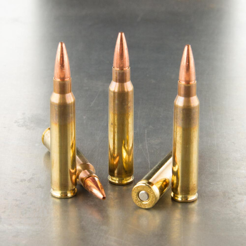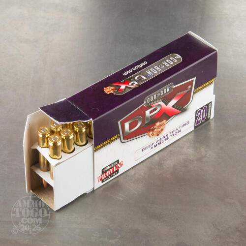 This is .223 Corbon DPX 62gr. Hollow Point Ammo. This ammo is manufactured by Corbon using Barnes Triple Shock X-Bullets. Corbon products have earned a distinctive reputation in the industry with their high energy JHP ammunition. They maintain that standard with this new DPX line, it has a deeper penetration and rapid controlled expansion to make it the optimum load for Hunting. The Barnes Triple Shock X-Bullet is a solid copper projectile and heat treated for extra toughness. There's no separate jacket and no lead core to separate. The bullet holds together for deep, dependable penetration---every time! A deep forward cavity causes the nose to peel back in four separate, razor-edged petals. Viewed head on, the appearance of these four petals gives the X-Bullet its name. In 2003, Barnes introduced the Triple-Shock X-Bullet. Identifiable by rings cut into its copper body, it offers all the qualities that have made the X-Bullet a favorite of knowledgeable hunters everywhere. Like the X-Bullet, the Triple-Shock X-Bullet features all-copper construction, no fragmentation, maximum weight retention and 28 percent deeper penetration than the best lead-core bullets offered. On impact, the bullet face opens to create four razor-sharp cutting edges. The new Triple-Shock X-Bullet provides significantly greater velocities, lower pressures and less fouling, without requiring an external coating. The bullet delivers a triple impact! One, when it first strikes the game, Second, as the bullet begins opening, and Third, a devastating impact when the specially engineered cavity fully expands to deliver extra shock with maximum transferred energy. Barnes' revolutionary Triple-Shock X-Bullet design provides all the benefits of the time-proven X-Bullet. In addition to greater velocities, reduced pressures and less copper fouling, the Triple-Shock X-Bullet delivers a three-punch impact that's deadly on game. This ammo is the most devastating and deepest penetrating ammo you can buy in a factory load. It is packed in 20rd. boxes.