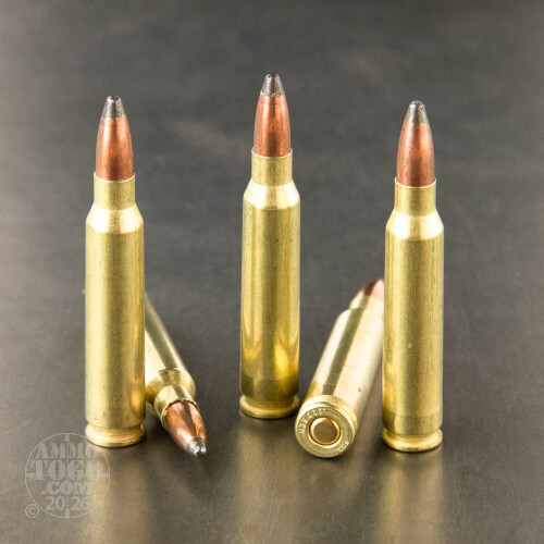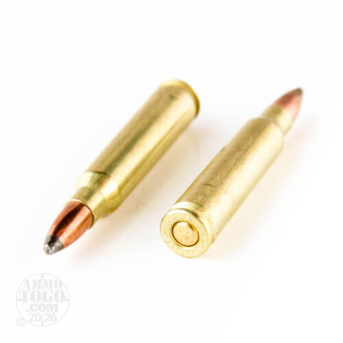 This ammunition is factory fresh, non-corrosive, Berdan primed and features non-reloadable brass-plated steel cases. Each round produces a muzzle velocity of 3050 feet per second.