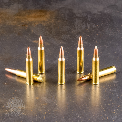 These rounds are factory fresh, non-corrosive, boxer primed, and feature fully reloadable brass cases. Leaving the muzzle at a velocity of 3042 feet per second, each round delivers a muzzle energy of 1275 foot pounds.