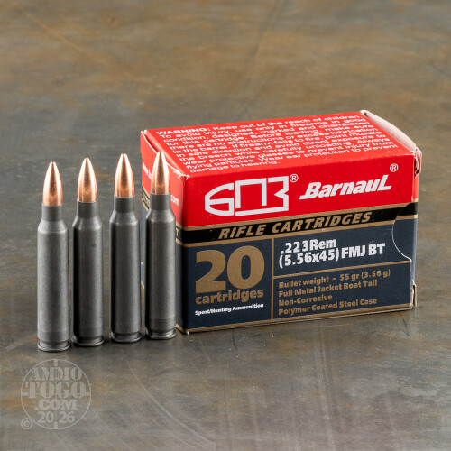 20rds – 223 Rem Barnaul 55gr. FMJBT Ammo