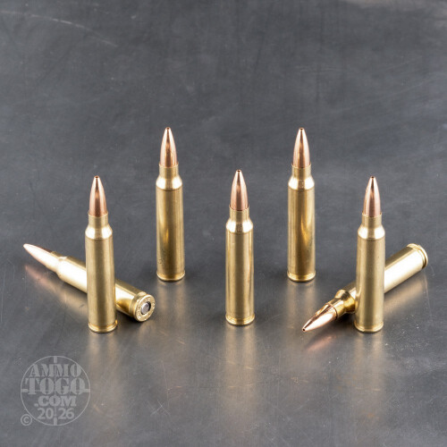 This 223 Rem cartridge by Federal shows off Berger’s intensely accurate 73 grain target projectile. The bullet features an expertly angled tapered base, which measurably lessens turbulence produced in flight to ensure a laser-flat trajectory, greater momentum downrange, and pronounced immunity to wind drift. This bullet’s hollow point meplat, concentric jacket, and uniform, voidless core all come together to exaggeratedly heighten its accuracy. Is there any wonder why Berger’s are the favorite bullets at Precision Rifle Series events?This round includes Federal’s Gold Medal primer, which is crafted to impressively tight tolerances and ignites with unerring consistency. It has one of the best brass casings Federal will ever have drawn and tapered, and is loaded with propellant that gives it a stable, predictable muzzle velocity. Federal assembled the whole thing to the tightest specifications they’re capable of, so whether you’re competing or simply training you’re bound to impress everyone who witnesses you in action.