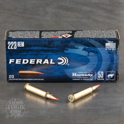20rds – 223 Rem Federal Varmint & Predator 53gr. V-MAX Ammo