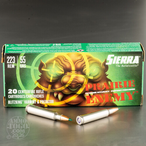 20rds – 223 Rem Sierra Prairie Enemy 55gr. BlitzKing Ammo