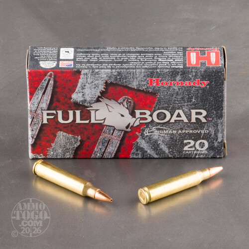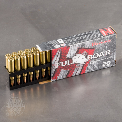 Hornady GMX rounds are especially accurate and can deal intense amounts of damage. GMX bullets are designed as monolithic, copper alloy bullets to have massive expansion and 95% weight retention. Have a boar problem? This 20 round box of 50 grain Hornady Full Boar GMX is perfect for eradicating those dangerous and annoying beast.-