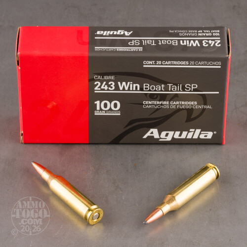 20rds – 243 Win Aguila 100gr. SPBT Ammo Details