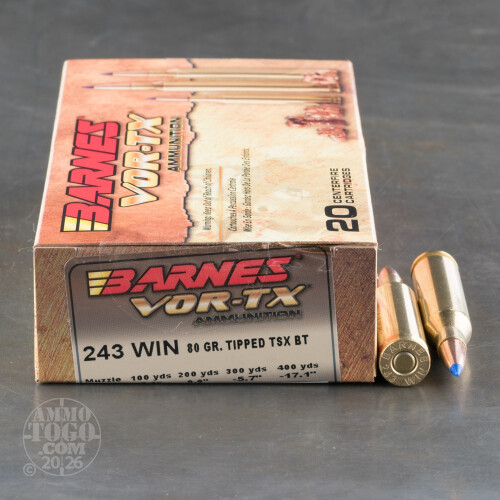 20rds – 243 Win Barnes VOR-TX 80gr. TTSX BT Ammo Details