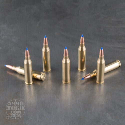 This 243 Win cartridge is from Barnes’ VOR-TX line of ammunition, and accordingly features its Utahn manufacturer’s Tipped Triple Shock X (TTSX) projectile. Like the original TSX, the TTSX is made entirely of copper, so it’s perfect to take hunting in The Golden State. This bullet’s monolithic construction further greatly reduces the amount of fouling it leaves behind in a rifle’s bore, and also causes practically perfect weight retention as it penetrates and expands within a target.This bullet has got a polymer tip which heightens its accuracy and initiates instantaneous expansion on impact. As it mushrooms up to double its original diameter the TTSX produces multiple sharp petals which shred flesh and smash through bones, making it one of the last words in hunting. This bullet is also very accurate thanks to its boat tail design, which raises its ballistic coefficient to give it a flatter trajectory, better resistance against crosswinds, and greater retained downrange velocity.