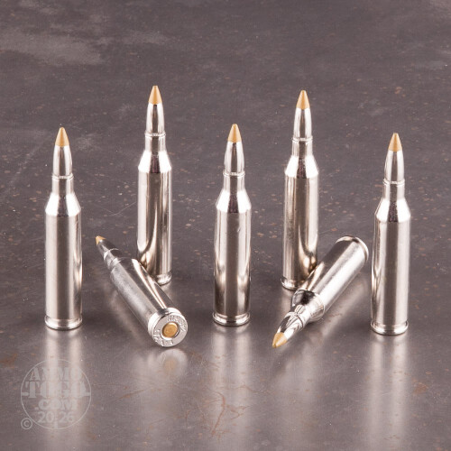 This fine American-made hunting ammo is loaded with reusable nickel-plated brass cases. In addition to providing heightened resistance to splotchy corrosion, nickel lowers metal-on-metal friction to promote trouble-free cycling in all rifles.