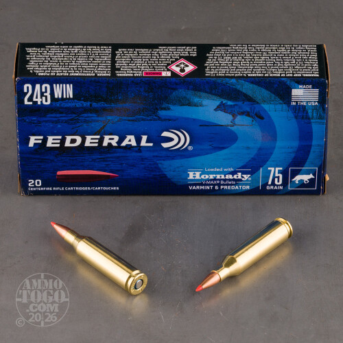 20rds – 243 Win Federal Varmint & Predator 75gr. V-MAX Ammo