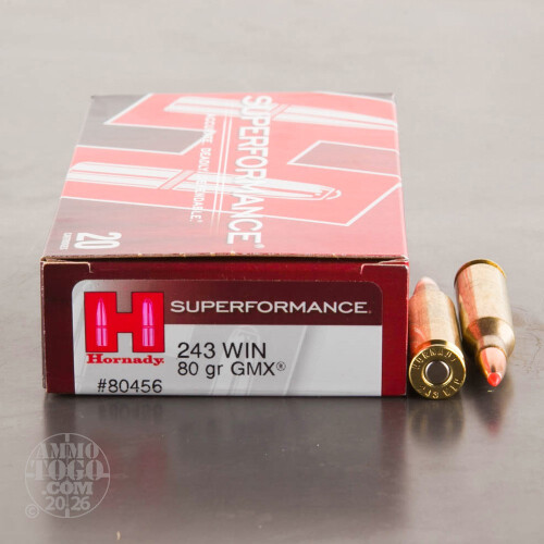 20rds - 243 Win. Hornady 80gr GMX Superformance Ammo Details