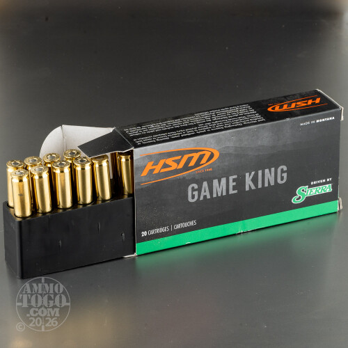 Based in Montana, HSM combines premium quality components with loading techniques that they have honed for the better part of one century. These rounds’ GameKing bullets are flatly seated in their new production brass cases, each with uniform wall thicknesses and capacities. Clean burning propellant and responsive primers deliver a steady 3,000 fps muzzle velocity!