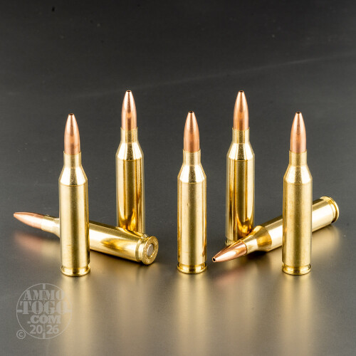 Deer season is once a year. It may last for 365 days depending on your interpretation of local hunting laws, but it’s still once a year nevertheless. Why disadvantage yourself with anything less than superlative hunting ammo while you’re setting out to orphan Bambie? There’s just no sense in it when you can order this 243 Win ammo by HSM.This round features the GameKing HPBT bullet by Sierra. Just like the world-famous MatchKing match bullet it features a virtually perfectly concentric gilding metal jacket for heightened accuracy, as well as a ballistically efficient boat tail base. Unlike the MatchKing, the GameKing is designed for massive terminal expansion and retains over half of its weight even if it finds its target as close as 100 yards. Super impressive!