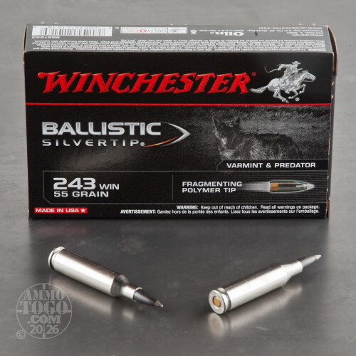 20rds – 243 Win Winchester Ballistic Silvertip 55gr. Polymer Tip Ammo