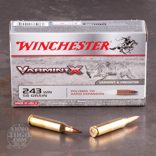 20rds – 243 Win Winchester Varmint X 58gr. Polymer Tip Ammo