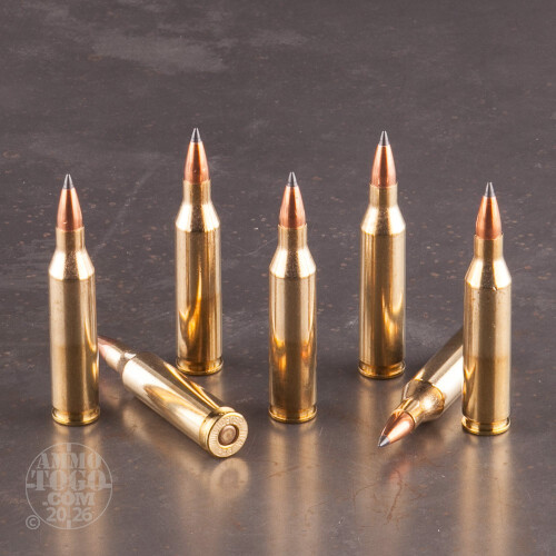 When you chamber this 243 Win cartridge from Winchester’s Varmint X line of ammunition in your rifle, Mr. Coyote will wish he had stuck to just bothering the roadrunner. Its 58 grain projectile offers the long-range performance you need to hit fast and wily game thanks to its polymer tip, which thoroughly streamlines its aerodynamic profile, as well as its uniform lead core and concentric jacket which together optimize its rotational stability. When this bullet makes contact with a target its tip jams into its core to initiate practically instantaneous fragmentation, which is complemented greatly by its thin jacket’s specially engineered sidewall profile.Winchester’s other components certainly pass muster as well. This round’s casing is made of brass and fresh out of the factory, so it functions seamlessly in any platform and serves exceptionally well at the reloading press. You can depend on this cartridge’s propellant to deliver the same chamber pressure and muzzle velocity shot after shot, and its primer is non-corrosive as well. Don’t order your ammo from the Acme catalog -- get a quality Winchester product from AmmoToGo.com today!