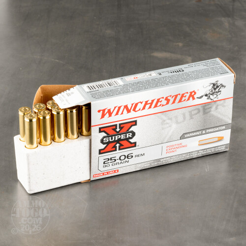 This is .25-06 Winchester 90gr. Super-X Positive Expanding Point Ammo. The Winchester Positive Expanding Point bullets are specifically designed for extreme accuracy and maximum impact on varmints and medium-sized game. The bullet jacket and lead core toughness is specifically matched to the caliber to give you optimum expansion and penetration. This ammo is packed in 20rd. boxes.