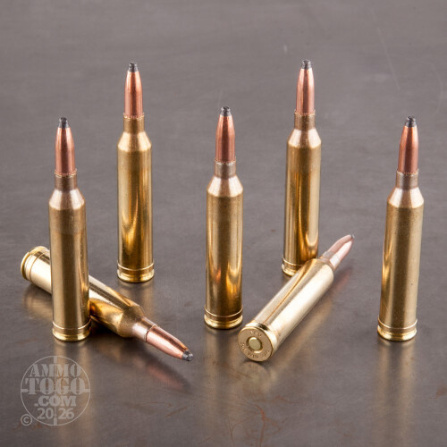 Upon impact with a game animal, the small lead portion initiates expansion while the long size of the jacketed .264 Win Mag projectile places a heavier emphasis on penetration. As a result, this round will efficiently punch through tough hide and bone while deforming at a controlled rate starting from the tip. This causes maximum energy to be dumped into into vital zones of large game for quick, humane drops with little chance for over-penetration.