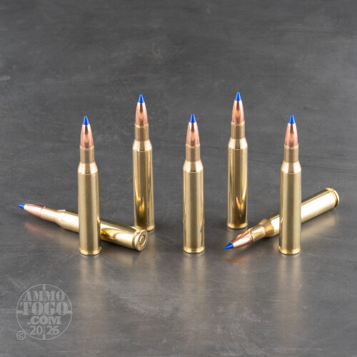 This 270 Win cartridge from Barnes’ VOR-TX line of ammunition features the exciting tipped Triple Shock X boat tail (TTSX BT) projectile. The bullet is made totally from copper, so you won’t encounter any ugly bureaucracy if you fire it in California, and it fouls very little as well. The TTSX’s monolithic composition further makes the issue of core/jacket separation entirely moot, so you can count on virtually perfect weight retention as it expands to produce four razor sharp cutting petals during penetration.This round’s is an accurate bullet thanks to its boat tail design’s tapered base, which flattens its trajectory and permits it to retain a great deal of its velocity downrange. The TTSX also sports pressure relieving grooves cut into its shank, as well as a pointed polymer tip which makes it more aerodynamic in flight. The tip additionally serves to initiate expansion as it drives into the bullet’s nose cavity upon impact.