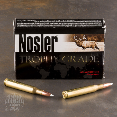 Nosler Trophy Grade ammunition is machine loaded to strict tolerances. Individually inspected by hand, these loads are comparable in quality to the industry’s best handloads. With headquarters located in Bend, Oregon, Nosler builds some of the most innovative, accurate, and effective American-made ammunition on the market today.