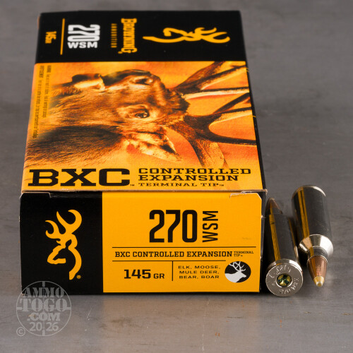 20rds – 270 WSM Browning BXC Controlled Expansion 145gr. Terminal Tip Ammo