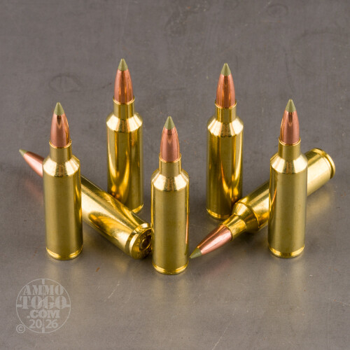 Here’s a hot tip: hunt with the Expansion Tip! Nosler’s state-of-the-art hunting bullet is made entirely out of copper alloy, so you can hunt where lead has been banned without worrying about game wardens coming after you.This 270 Winchester Short Magnum round’s 130 grain E-Tip isn’t just lead-free, of course. It is super accurate thanks to its inability to deposit lead fouling, green polymer-tipped meplat, boat tail Solid Base, and lack of any flaws that could have made its weight imbalanced. The E-Tip also showcases the power of the E² Cavity, which dishes out massive expansion without depriving the bullet of its ability to retain no less than 95% of its weight after collision with the target. That secures the deep, wide and deadly wound channel which’ll make any trophy buck your trophy buck.