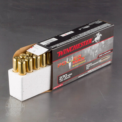 20rds - 270 WSM Winchester 130gr. Power Max Bonded Protected Hollow Point Ammo