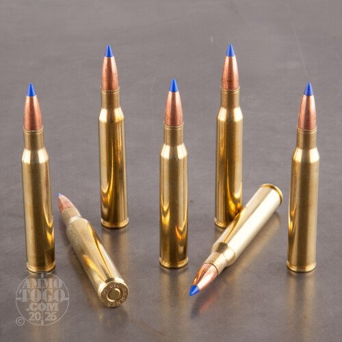 This 280 Rem cartridge is from Barnes’ VOR-TX line of ammunition. Its 140 grain TTSX BT projectile features a polymer tip which upon impact initiates rapid expansion up to double the bullet’s original diameter. As the bullet mushrooms it extends four very sharp cutting petals, giving it tremendously devastating terminal performance. The effect is a fine solution for efficient and humane hunting.The sleek TTSX BT has a number of features that improve its accuracy. Its tip streamlines its shape, and the rings cut into its shank work to reduce pressure. Its boat tail design further raises its ballistic coefficient, giving it a flatter trajectory and better ability to resistance to cross winds than a flat based bullet could provide.