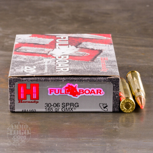 20rds - 30-06 Hornady Full Boar 165gr. GMX Ammo Details