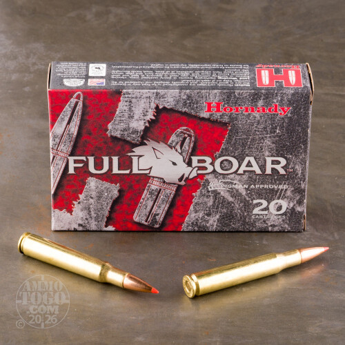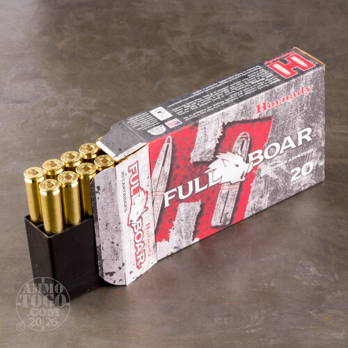 These particular rounds are specifically designed for boar hunting. Hornady's GMX rounds are designed to have 95% weight retention and feature monolithic, copper bullets. With a muzzle velocity of 2800 feet per second, these 165 grain rounds will take down any boar of your choosing. Pick up a 20 round box today!