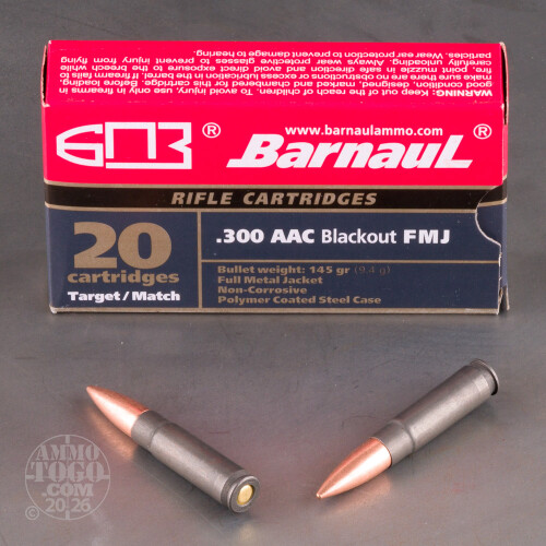 20rds – 300 AAC Blackout Barnaul 145gr. FMJ Ammo Details