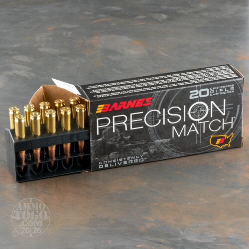 Precision Match ammo is developed for elite snipers, but is available to everybody. They’re not only these rounds’ bullets that are highly consistent with one another -- each of their components have been optimized to perform interchangeably as well. These rounds’ top quality brass casings hold identical propellant charges, the latter of which have been measured and formulated to deliver temperature blind performance. Barnes’ Boxer primer is as sensitive as can be, and won’t expose your rifle’s action to corrosive residues once ignited.
