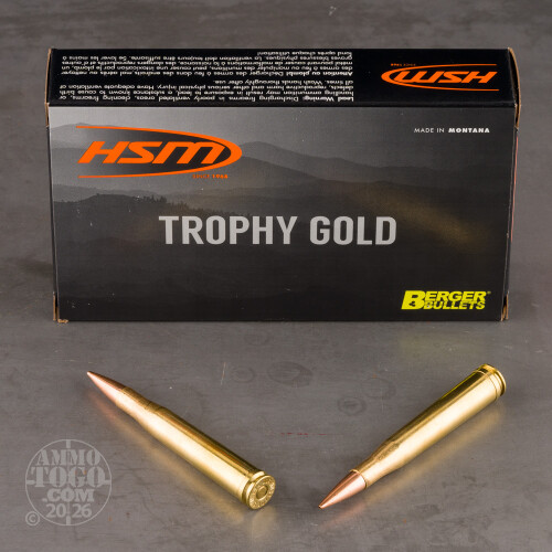 It’s safe to say that the hallowed 300 H&H Magnum will never achieve massive popularity again in our lifetime. But it’s also never going to completely vanish, as it is just too satisfying and useful to hunt with. If you’re a 300 H&H Mag marksman, then we’ve got your elite HSM Trophy Gold hunting ammunition in stock and ready to rock.HSM recruited Berger of Arizona to create this round’s bullet. It is the Hunting Very Low Drag (VLD), a hollow point boat tail that is somewhat uniquely engineered to undergo terminal expansion. The VLD owes its accuracy to its streamlined secant ogive jacket profile, as well as its virtually perfectly concentric jacket (drawn to a concentricity standard of no more or less than 0.0003”). When the VLD connects with its prey, it burrows to a depth of 2-3” before letting loose rapid and deadly terminal expansion accompanied by extreme hydrostatic shock.