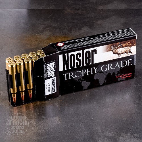 20rds - 300 RUM NoslerCustom Trophy Grade 165gr. Partition SP Ammo