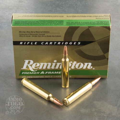 This package contains 20 rounds of Remington Premier A-Frame .300 Ultra Mag ammunition. Each cartridge is loaded with a 180 grain soft point A-Frame projectile. Remington A-Frame bullets are constructed with a special dual core to deliver reliable expansion at long-range, decreased velocities without risking over-expansion at short-range, higher velocities. Manufactured using Remington’s proprietary bonding process, these projectiles produce impressive controlled expansion up to twice the caliber size while delivering over 95 percent weight retention.