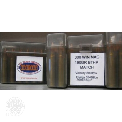 20rds - 300 Win. Mag Corbon Performance Match 190gr. BTHP Ammo Details