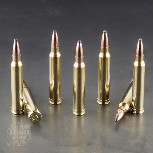 This ammunition is factory fresh, non-corrosive, boxer primed, and features high quality brass cases that are fully reloadable. Each round produces a consistent muzzle velocity of 2870 feet per second and a muzzle energy of 3110 foot pounds.