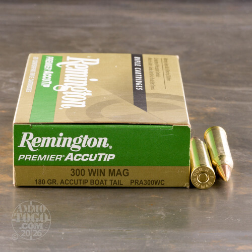 20 Rounds - 300 Win Mag Remington 180gr. Premier AccuTip Boat Tail Ammo
