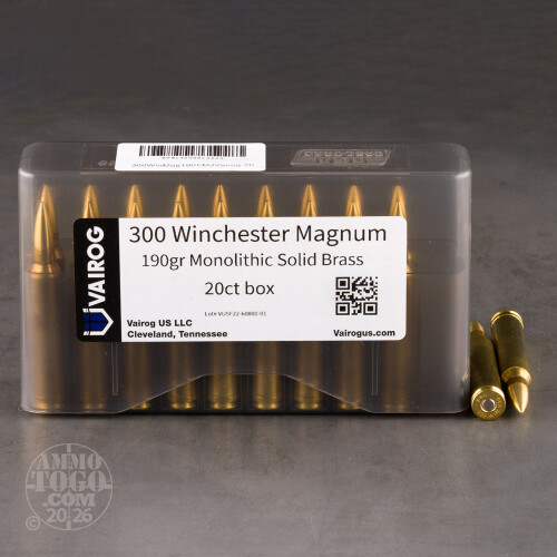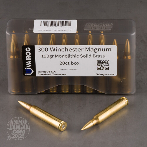 20rds – 300 Win Mag Vairog 190gr. Solid Brass Ammo