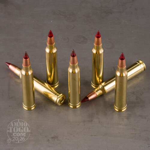Winchester’s Copper Impact line of ammunition isn’t just for hunting in places where you would get fined for possession of lead bullets. It’s also for people who appreciate awesome accuracy and overwhelming knockdown power!This cartridge’s 180 grain Copper Impact is made of solid copper (with the exception of its red polymer tip, of course). The bullet’s streamlined profile and boat tail both help it to follow a flat trajectory, as well as strike its target with greater momentum. Its 0.478 G1 ballistic coefficient (0.240 G7 BC) reflects the Copper Impact’s ability to reach 200 yards without having to rise by more than 2.31”, or 300 yards without having to rise by more than 5.59”. If you’re gunning for whitetail, the Copper Impact will retain at least 1,000 ft lbs of energy until it streaks past 812 yards!