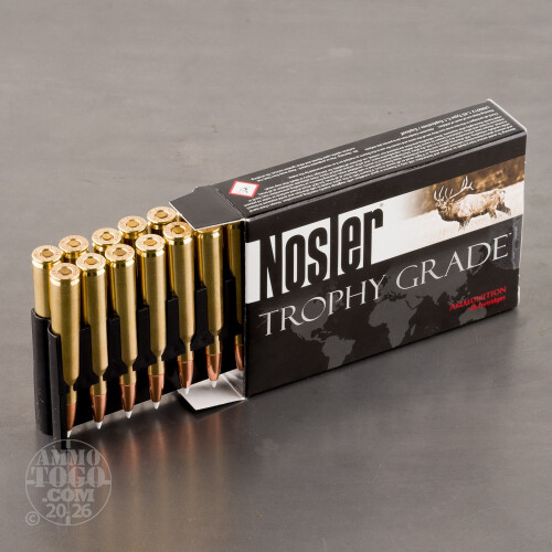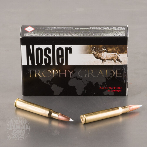Nosler has long been a highly respected name among the world’s big game hunters, due to their high-quality, precision reloading components. Nosler’s Trophy Grade ammunition combines Nosler Custom brass, bullets, and the company’s unsurpassed quality standards to deliver superior accuracy and consistency in fully-prepared, field-ready form. This package contains 20 premium rounds.