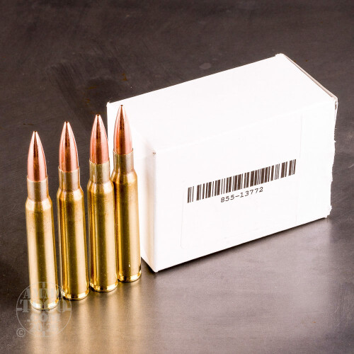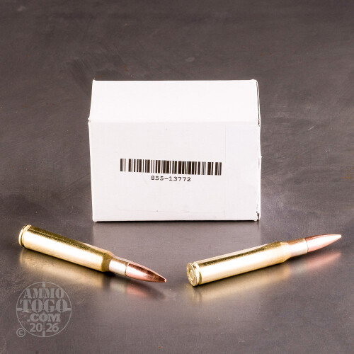This factory fresh ammunition is 100 percent non-corrosive, boxer primed, non-magnetic, and brass cased. Each round produces a consistent muzzle velocity of 2700 feet per second and a muzzle energy of 2499 foot pounds. Loaded to slightly less pressures than standard commercial .30-06 cartridges, these rounds are easier on the operating rods of older M1 Garand firearms.
